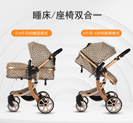 鋁合金車架,高景觀雙向推,四輪減震PU輪,可躺可坐,購物籃,一踩雙剎,一體棉墊,保暖腳套,可拆卸扶手,防蟲蚊帳,夏天涼席,雨罩,五點式安全帶,手腕帶,嬰兒提籃,加棉手套